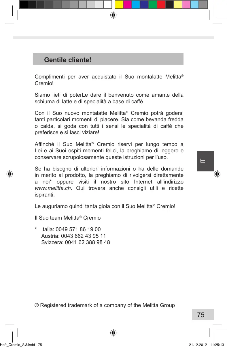 MANUALE UTENTE CREMIO MELITTA