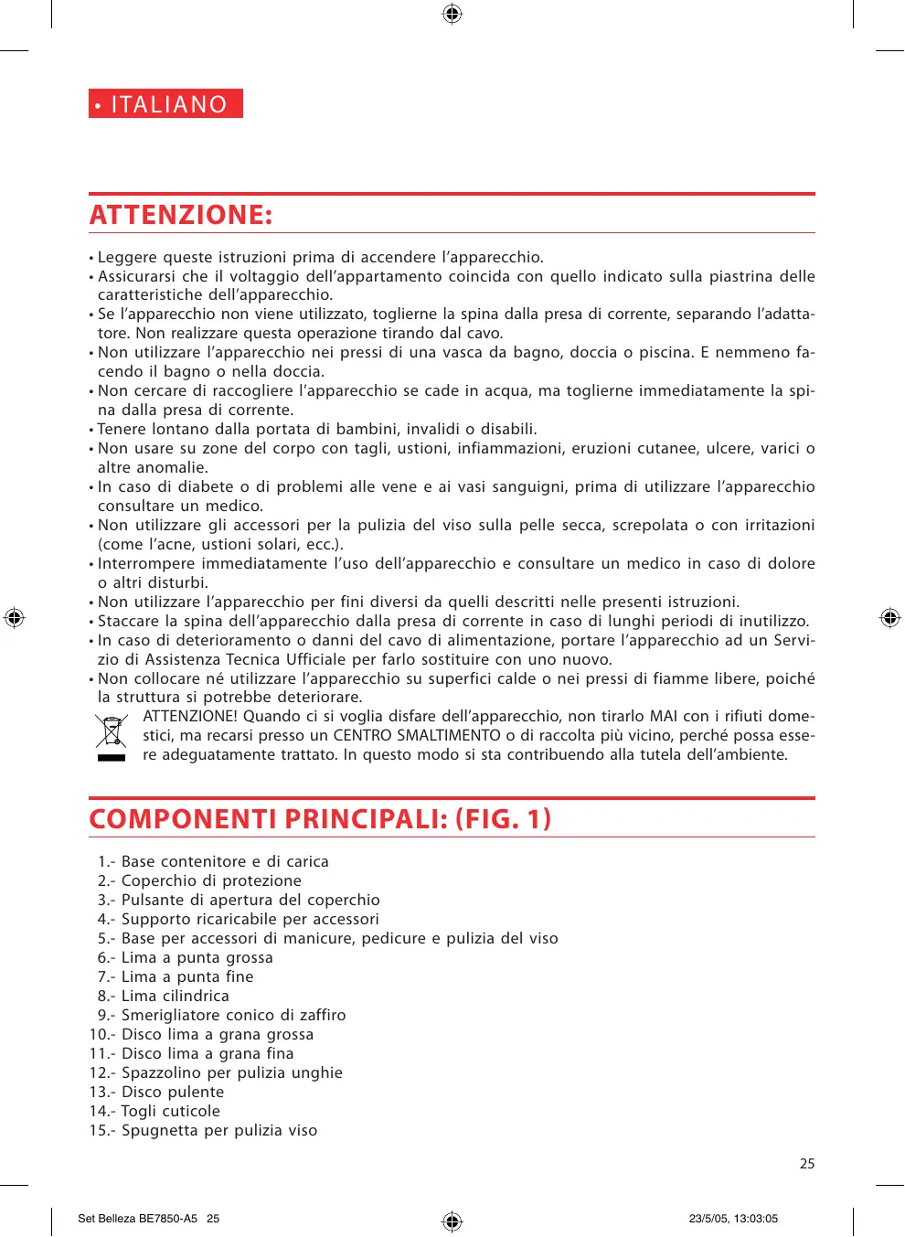 Scarica le istruzioni per il tuo Dispositivo per la cura della bellezza in formato PDF gratuitamente! Trova il tuo manuale BE7850 - SOLAC e riprendi in mano il tuo dispositivo elettronico. In questa pagina sono pubblicati tutti i documenti necessari per l'utilizzo del tuo dispositivo. BE7850 del marchio SOLAC.