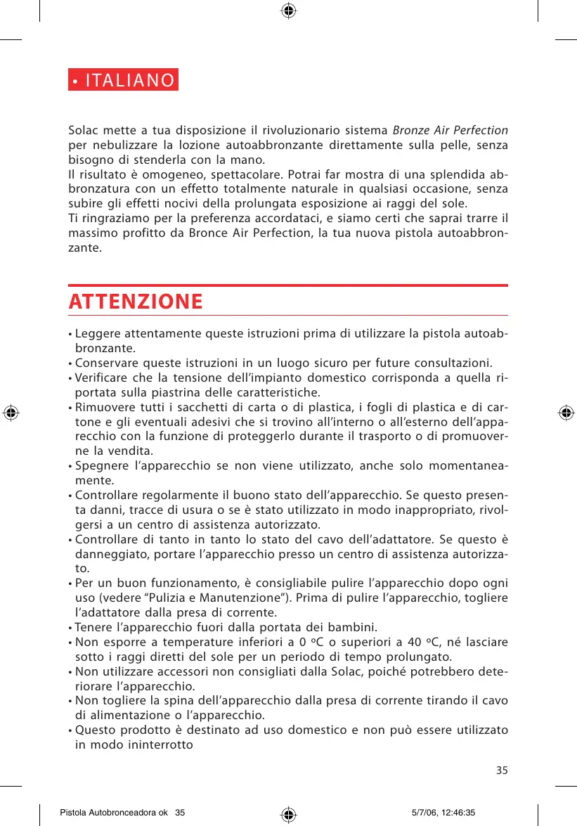 - Leggere attentamente queste istruzioni prima diutilizzare la pistola autoab-bronzante.