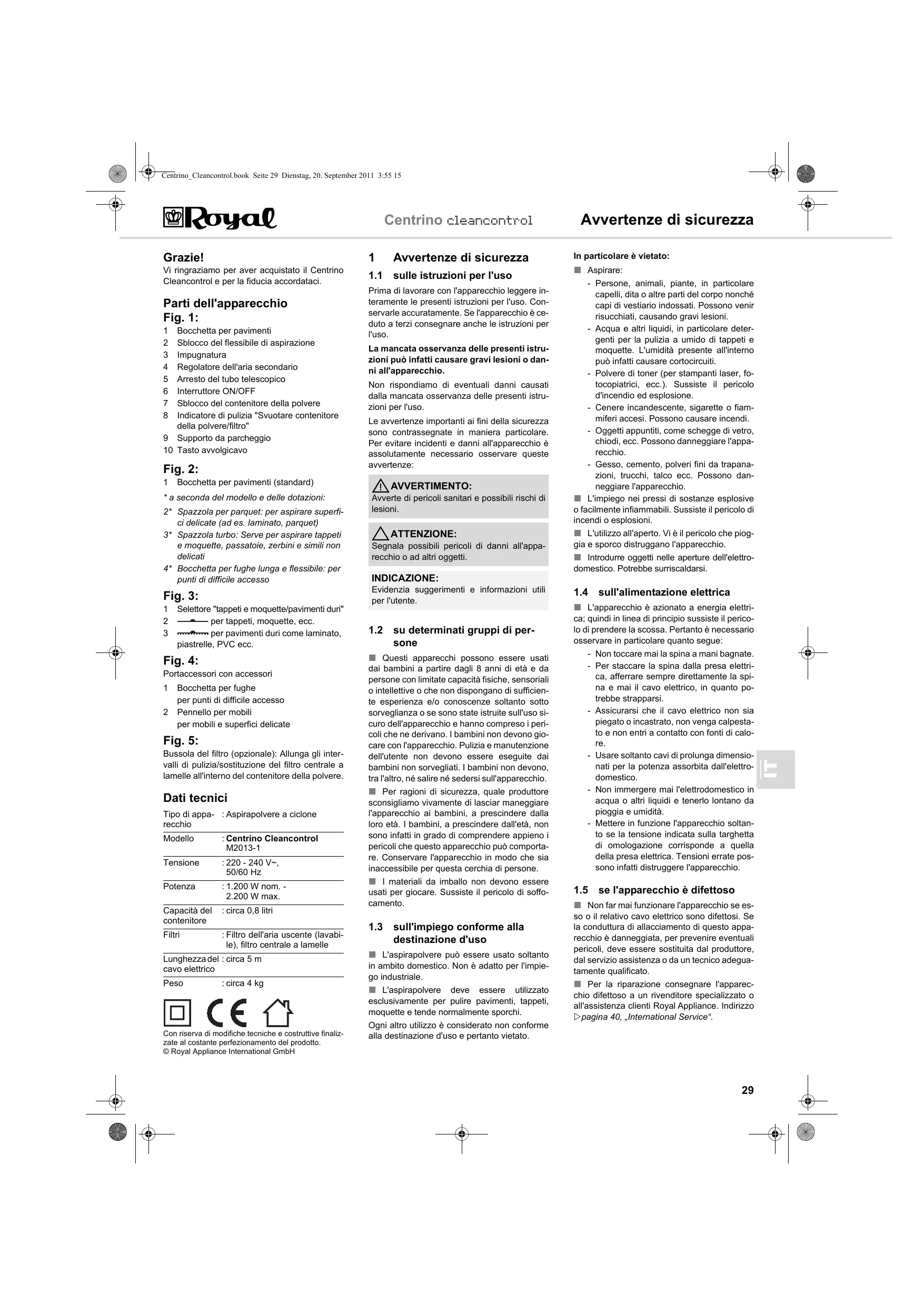 Vi ringraziamo per aver acquistato il Centrino Cleancontrol e per la fiducia accordataci.