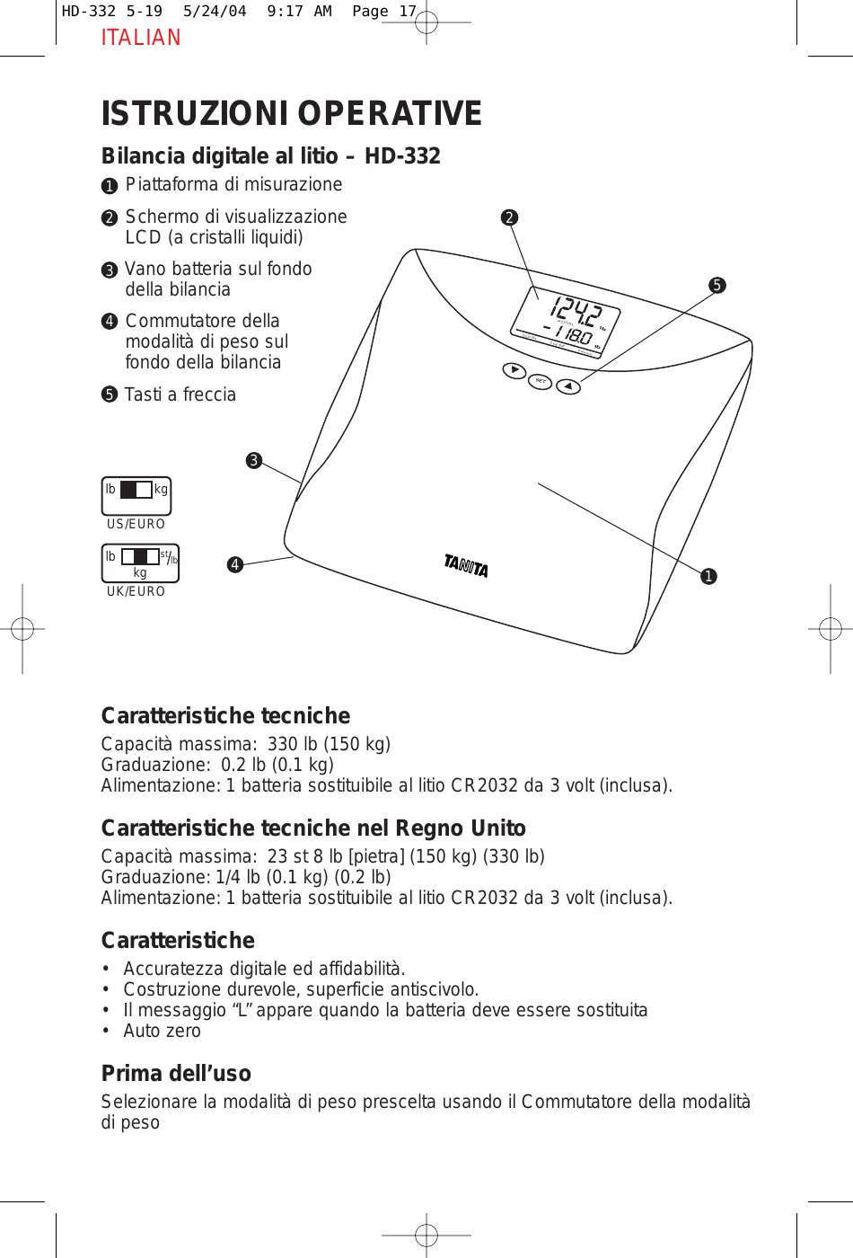 HD 332 - Bilancia pesapersone TANITA - Manuale utente e istruzioni gratuiti