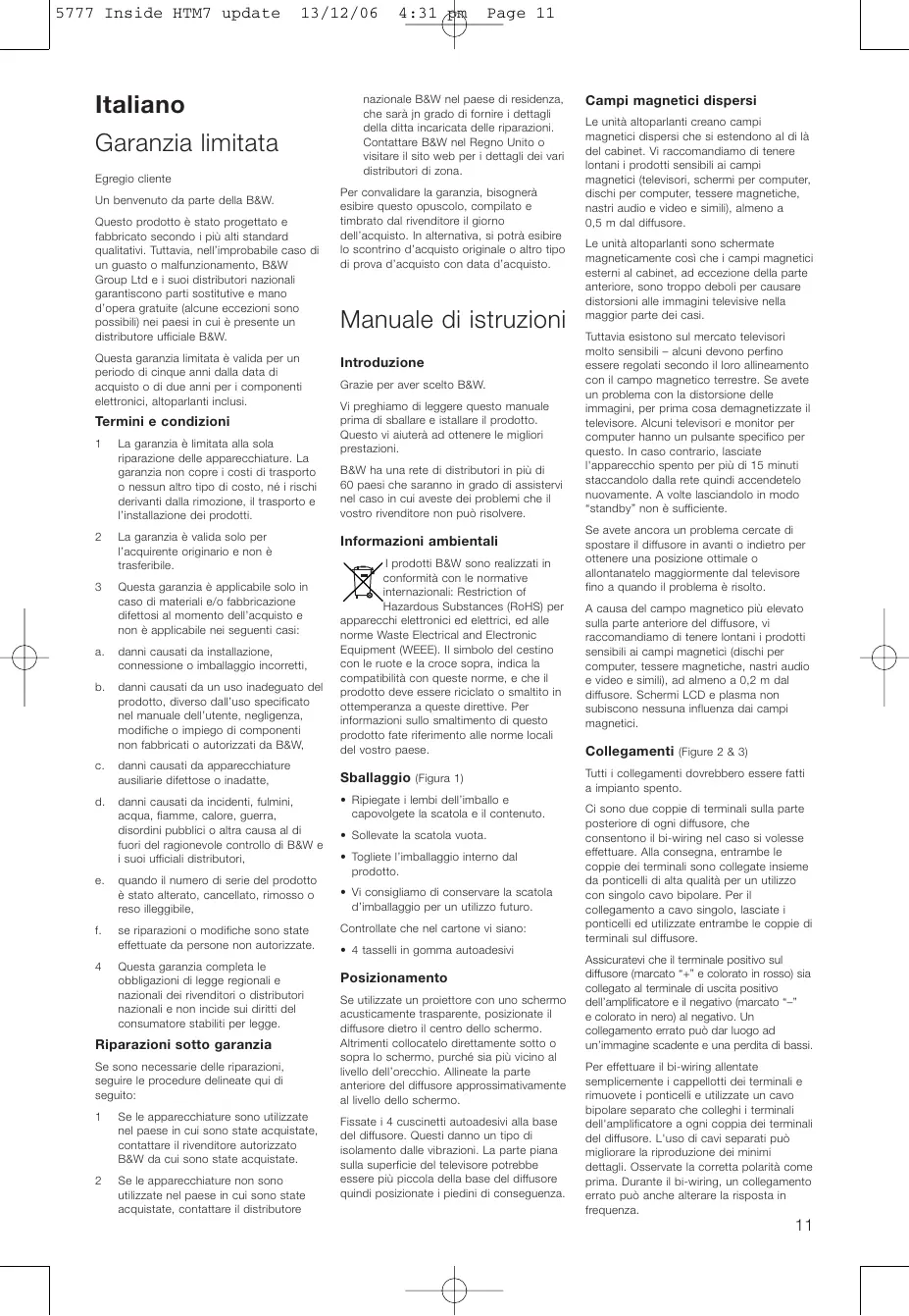 MANUALE UTENTE B&W HTM7 B&W