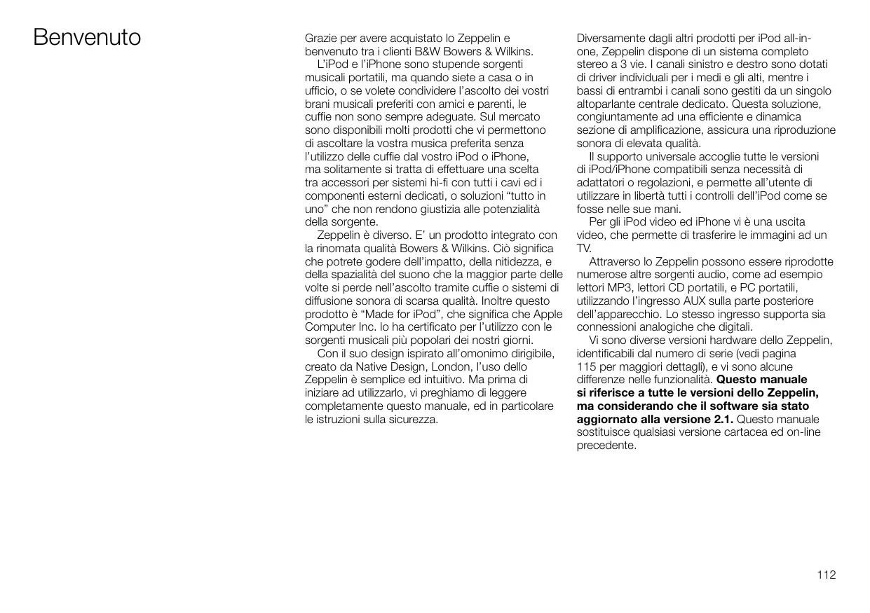 Trova gratuitamente il manuale del dispositivo B&W ZEPPELIN B&W in formato PDF.