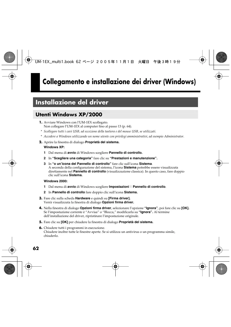 - Se è stata modificata l'impostazione nella finestra "Opzioni firma driver" (punto 4 a p. 62), ripristinare l'impostazione originale dopo il riavvio di Windows.