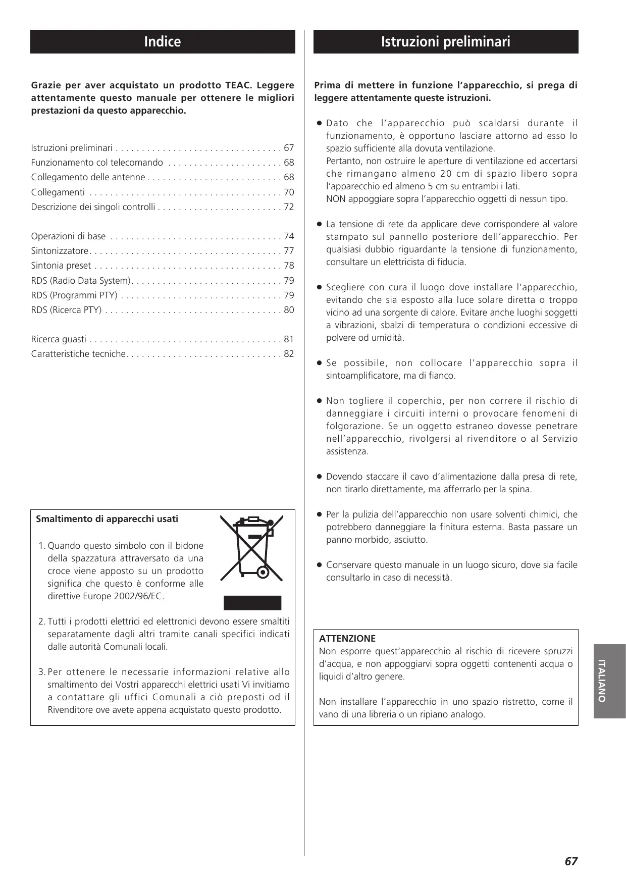 Grazie per aver acquistato un prodotto TEAC. Leggere attentamente questo manuale per ottenere le migliori prestazioni da questo apparecchio.