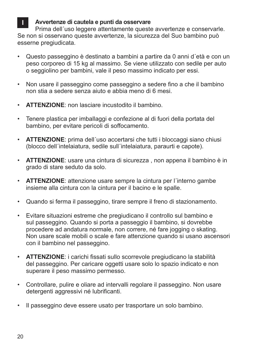 Avvertenze di cautela e punti da osservare Prima dell´uso leggere attentamente queste avvertenze e conservarle. Se non si osservano queste avvertenze, la sicurezza del Suo bambino può esserne pregiudicata.