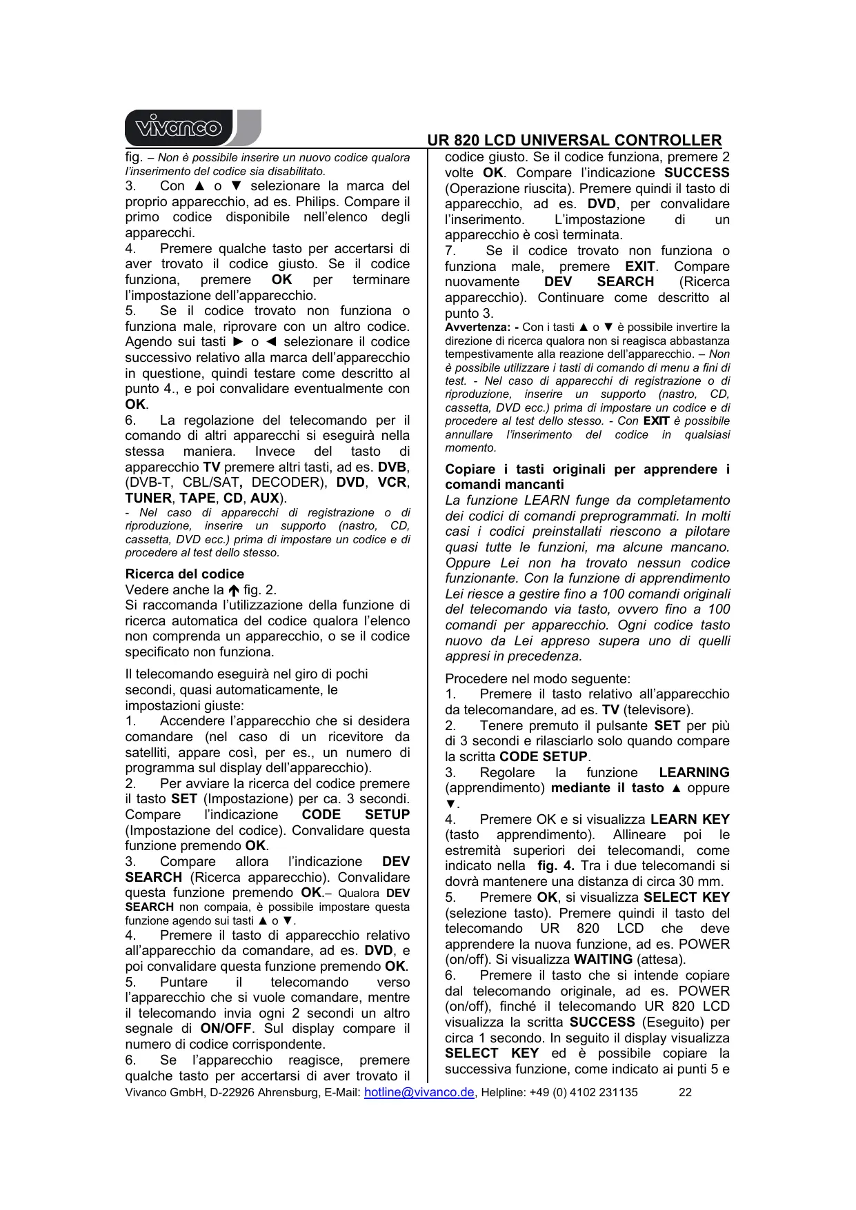 Trova gratuitamente il manuale del dispositivo UR 820 LCD UNIVERSAL CONTROLLER VIVANCO in formato PDF.