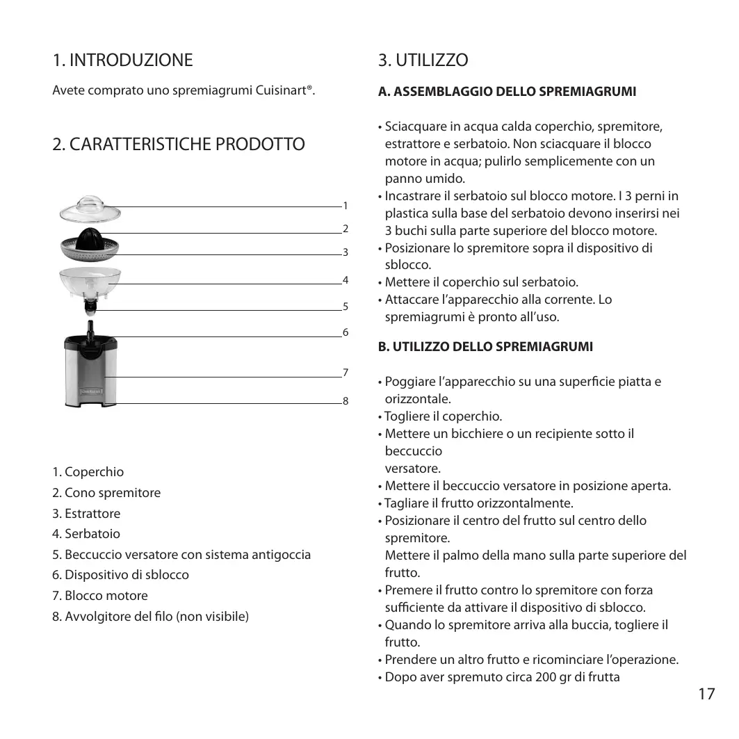 CCJ210E - Estrattore di succo CUISINART - Manuale utente e istruzioni gratuiti
