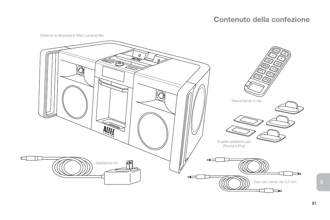 Grazie per aver acquistato il sistema di altoparlanti Altec Lansing Mix. Questo sistema, realizzato appositamente per interfacciarsi con iPhone e iPod, garantisce un audio di elevata qualità e prestazioni radio eccellenti.