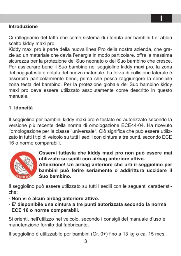 Veuillez lire attentivement ce manuel avant toute première utilisation du siège bébé «kiddy maxi pro». Conservez toujours ce manuel dans la boîte prévue à cet effet située dans la partie inférieure du siège bébé. Elle sera ainsi à votre disposition en cas de problèmes.