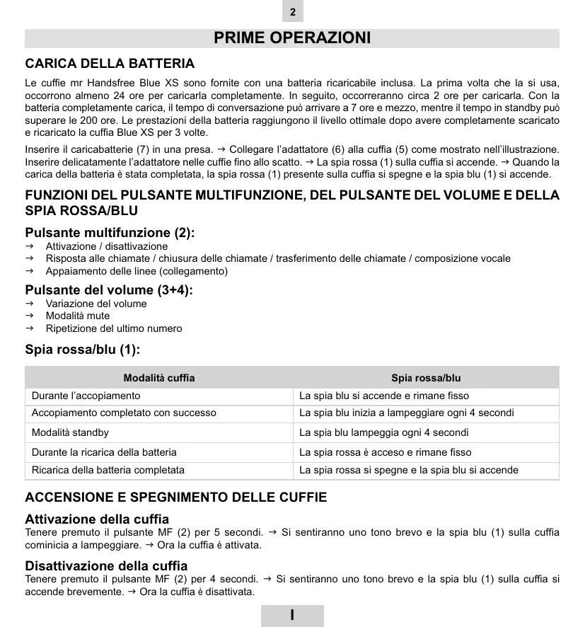 MANUALE UTENTE BLUE XS MR HANDSFREE