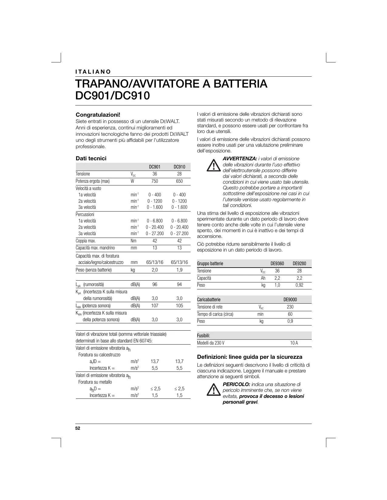 MANUALE UTENTE DC910KL DEWALT