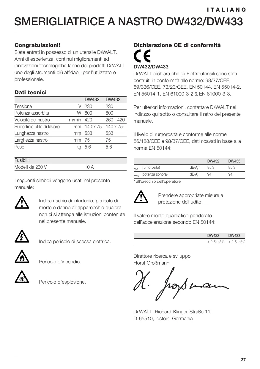 MANUALE UTENTE DW433K DEWALT