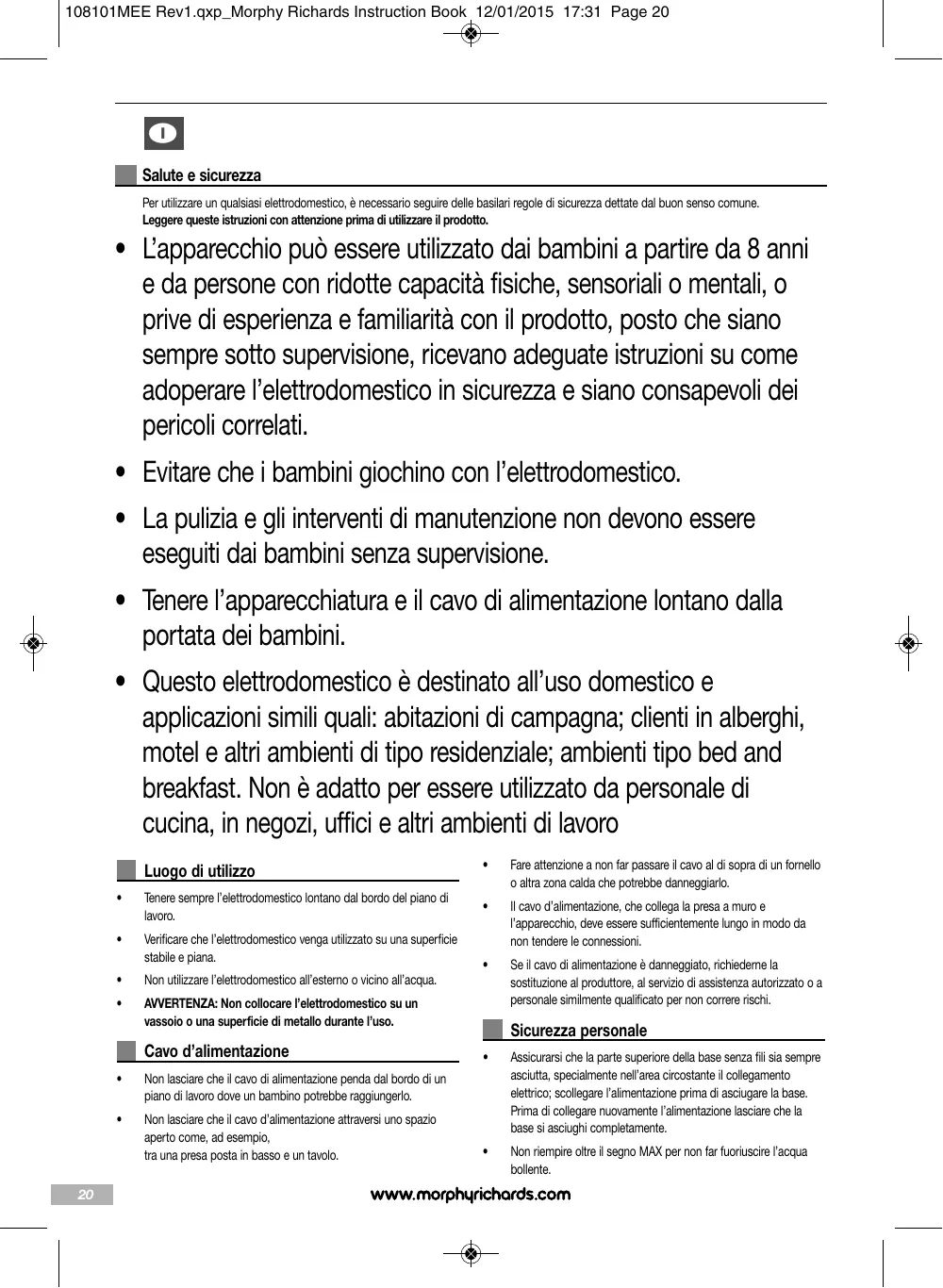 Trova gratuitamente il manuale del dispositivo M108102EE, M108000EE, M108101EE MORPHY RICHARDS in formato PDF.