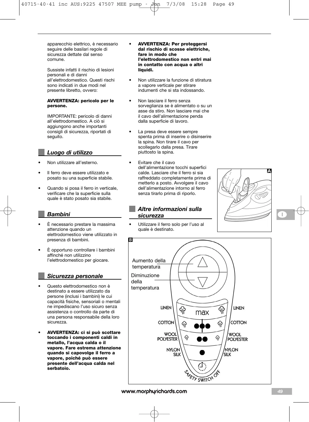 Scarica le istruzioni per il tuo in formato PDF gratuitamente! Trova il tuo manuale SEMI-ELECTRONIC 40715 - MORPHY RICHARDS e riprendi in mano il tuo dispositivo elettronico. In questa pagina sono pubblicati tutti i documenti necessari per l'utilizzo del tuo dispositivo. SEMI-ELECTRONIC 40715 del marchio MORPHY RICHARDS.