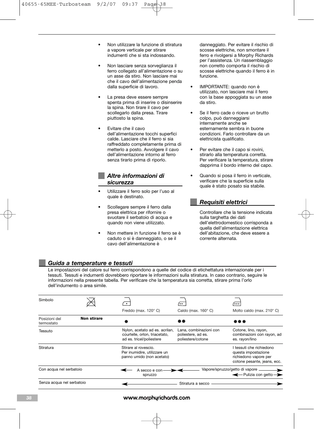 MANUALE UTENTE TURBOSTEAM 40659 MORPHY RICHARDS