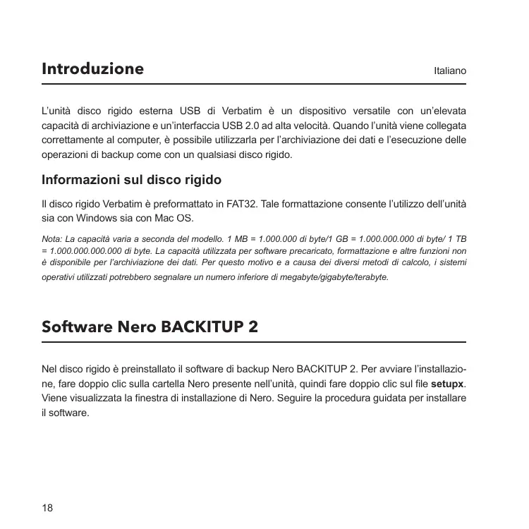 MANUALE UTENTE EXTERNAL HARD DRIVE USB 2.0 VERBATIM