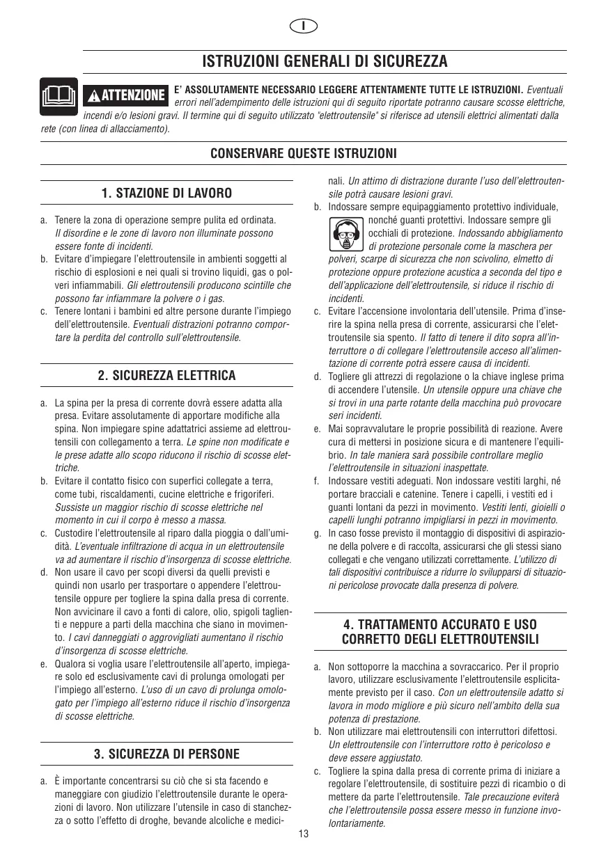 2. SECURITE ELECTRIQUE a. La fiche de l’outil électroportatif doit être appropriée à la prise de courant. Ne modifiez en aucune circonstance la fiche. N’employez pas d’adaptateur avec les outils électroportatifs mis à la terre. L’utilisation de fiches non modifiées et de prises appropriées réduira le risque de choc électrique. b Evitez tout contact corporel avec des éléments reliés à la terre, tels que tuyauterie, radiateurs, cuisinières, réfrigérateurs. La mise à la terre du corps accroît le risque de choc