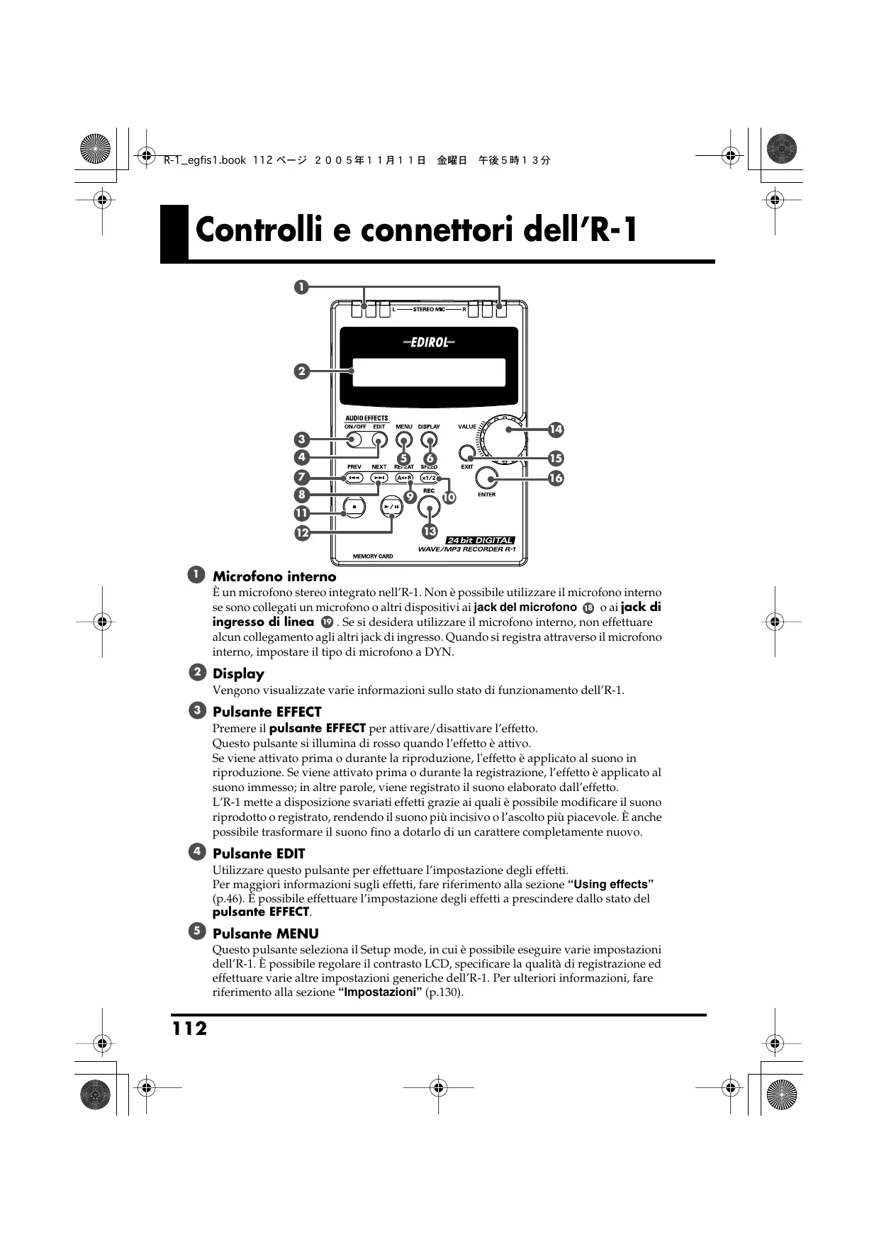 R1 - Registratore audio portatile EDIROL - Manuale utente e istruzioni gratuiti