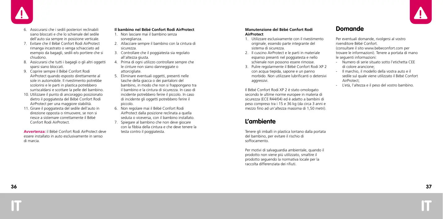 MANUALE UTENTE RODI AIRPROTECT KIDS CHOICE BEBECONFORT