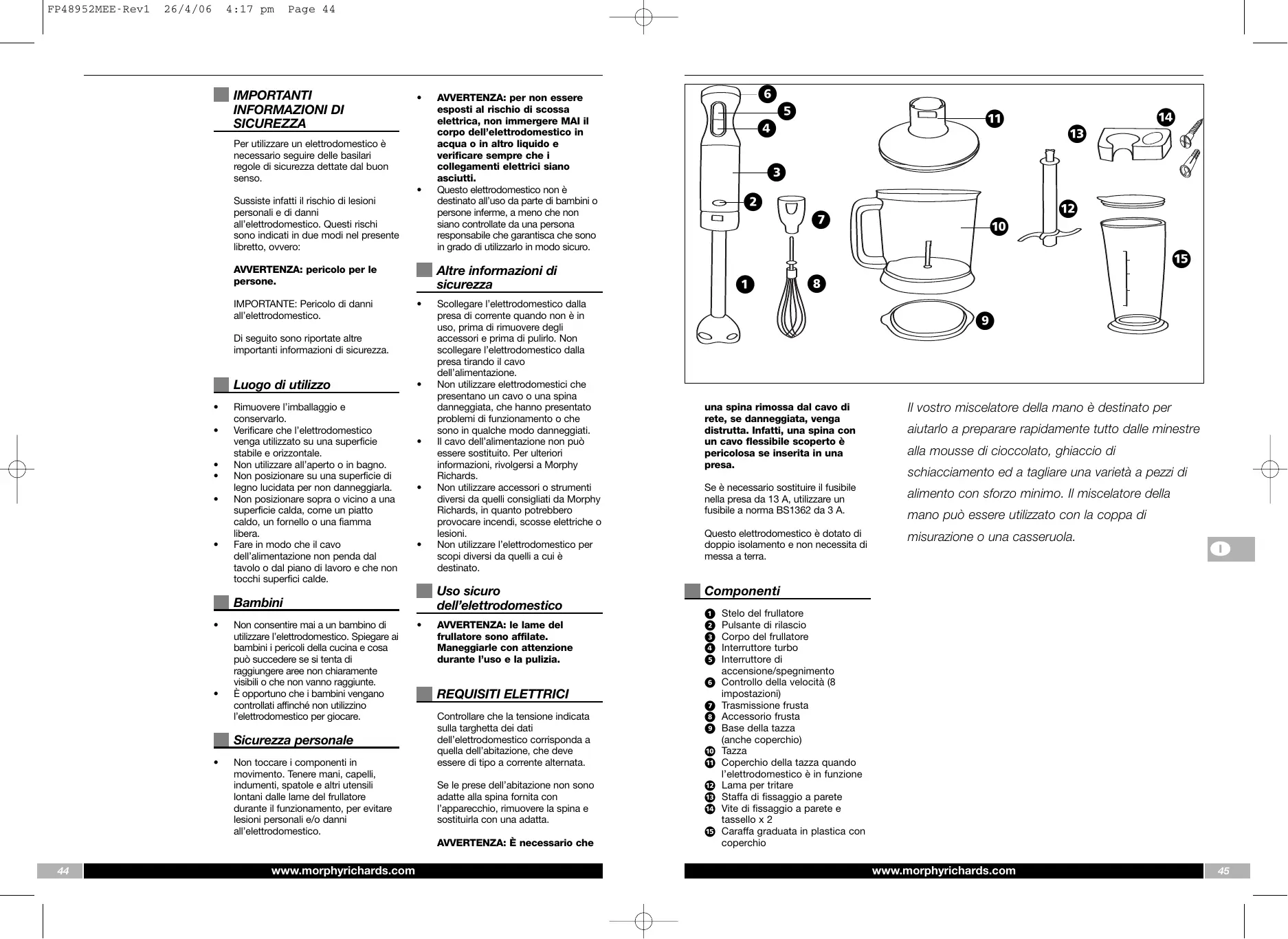 MANUALE UTENTE HAND BLENDER SET MORPHY RICHARDS