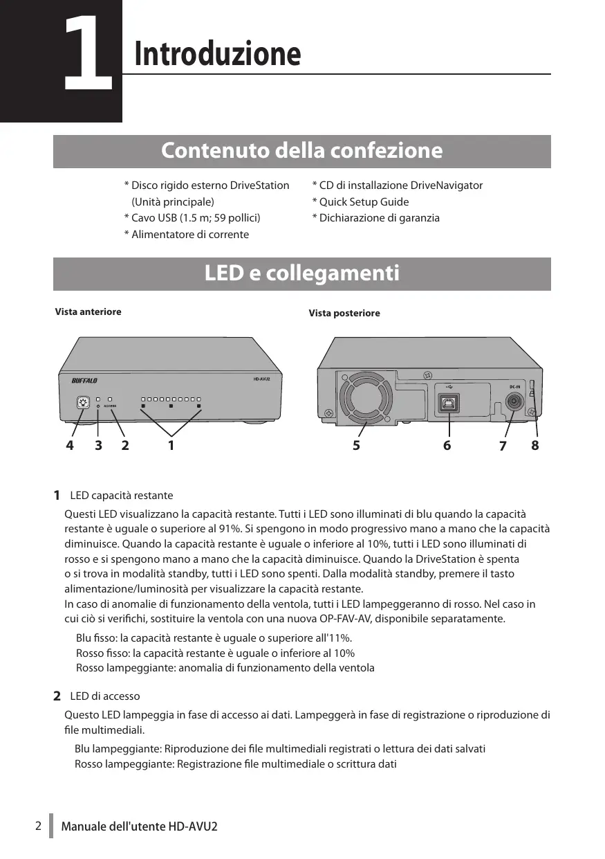 Scarica le istruzioni per il tuo Disco rigido esterno in formato PDF gratuitamente! Trova il tuo manuale HD-AVU2 - BUFFALO e riprendi in mano il tuo dispositivo elettronico. In questa pagina sono pubblicati tutti i documenti necessari per l'utilizzo del tuo dispositivo. HD-AVU2 del marchio BUFFALO.