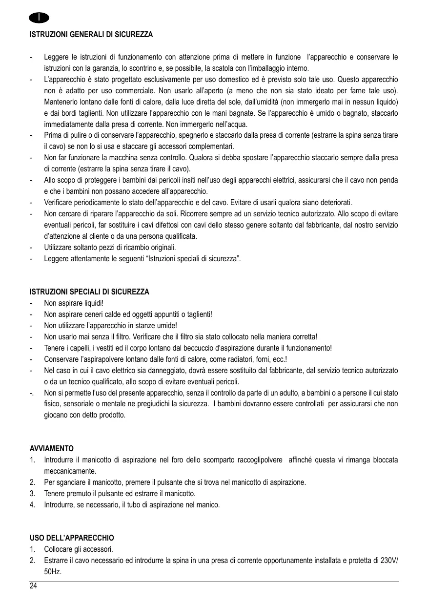 - Tenere i capelli, i vestiti ed il corpo lontano dal beccuccio d'aspirazione durante il funzionamento!
