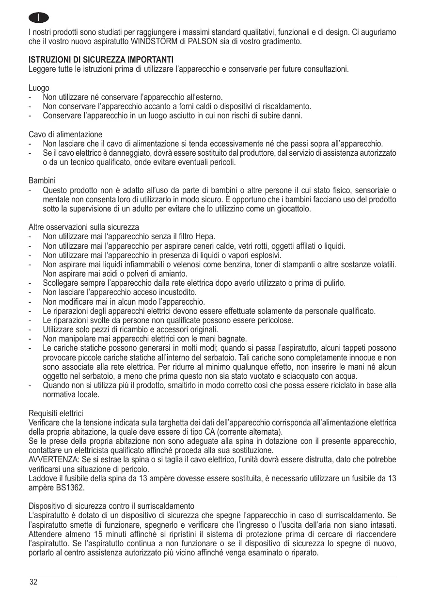 WINDSTORM - Aspirapolvere PALSON - Manuale utente e istruzioni gratuiti
