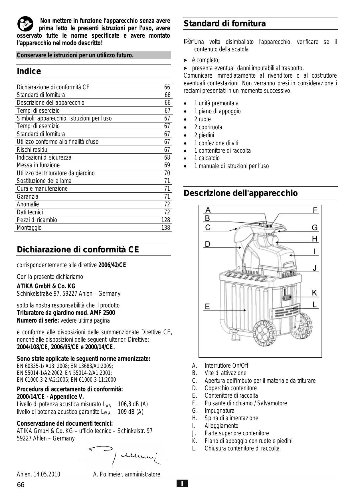 Scarica le istruzioni per il tuo Trituratore da giardino in formato PDF gratuitamente! Trova il tuo manuale 2800 W - ATIKA e riprendi in mano il tuo dispositivo elettronico. In questa pagina sono pubblicati tutti i documenti necessari per l'utilizzo del tuo dispositivo. 2800 W del marchio ATIKA.