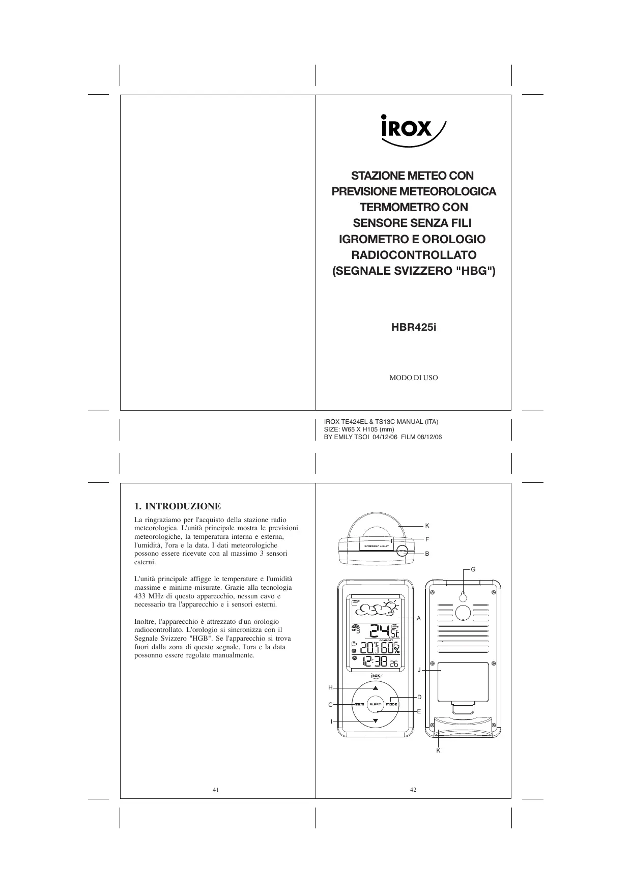 HBR425I - Stazione Meteo IROX - Manuale utente e istruzioni gratuiti