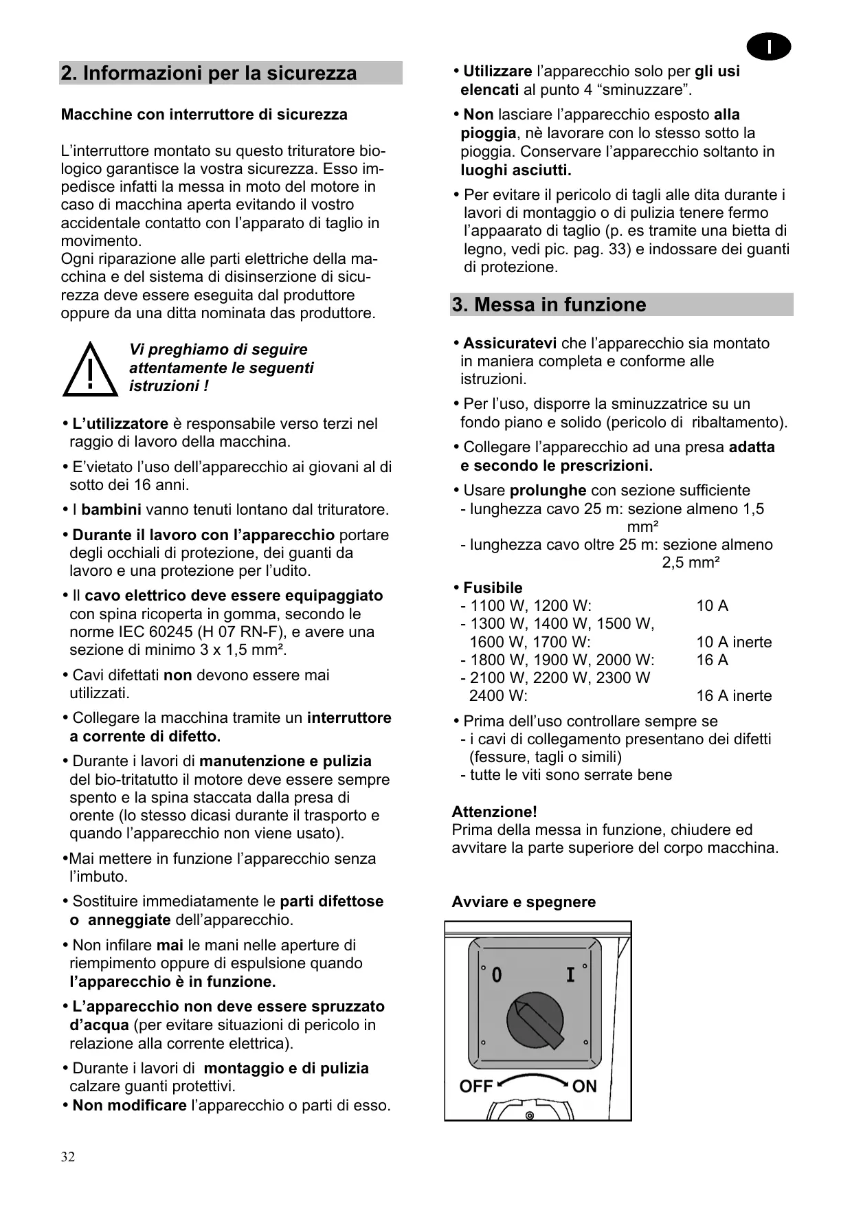Vi preghiamo di seguire attendamente le seguenti istruzioni, affinchè ansche il vostro trituratore risulté affidavitabile nel tempo e sempre pronto all'uso.