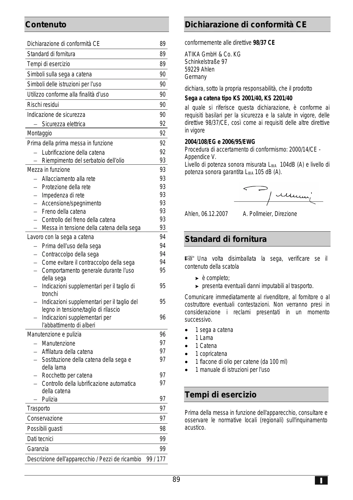 Scarica le istruzioni per il tuo Motosega in formato PDF gratuitamente! Trova il tuo manuale KS 2001-40 - ATIKA e riprendi in mano il tuo dispositivo elettronico. In questa pagina sono pubblicati tutti i documenti necessari per l'utilizzo del tuo dispositivo. KS 2001-40 del marchio ATIKA.
