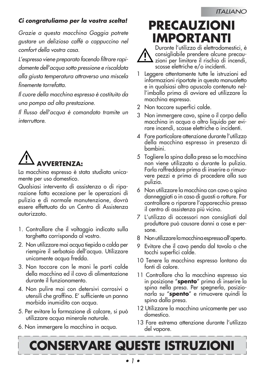 Scarica le istruzioni per il tuo Indefinito in formato PDF gratuitamente! Trova il tuo manuale BABY CLASS - GAGGIA e riprendi in mano il tuo dispositivo elettronico. In questa pagina sono pubblicati tutti i documenti necessari per l'utilizzo del tuo dispositivo. BABY CLASS del marchio GAGGIA.