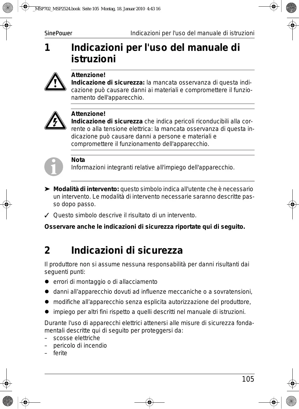 2 Indicazioni di sicurezza 105