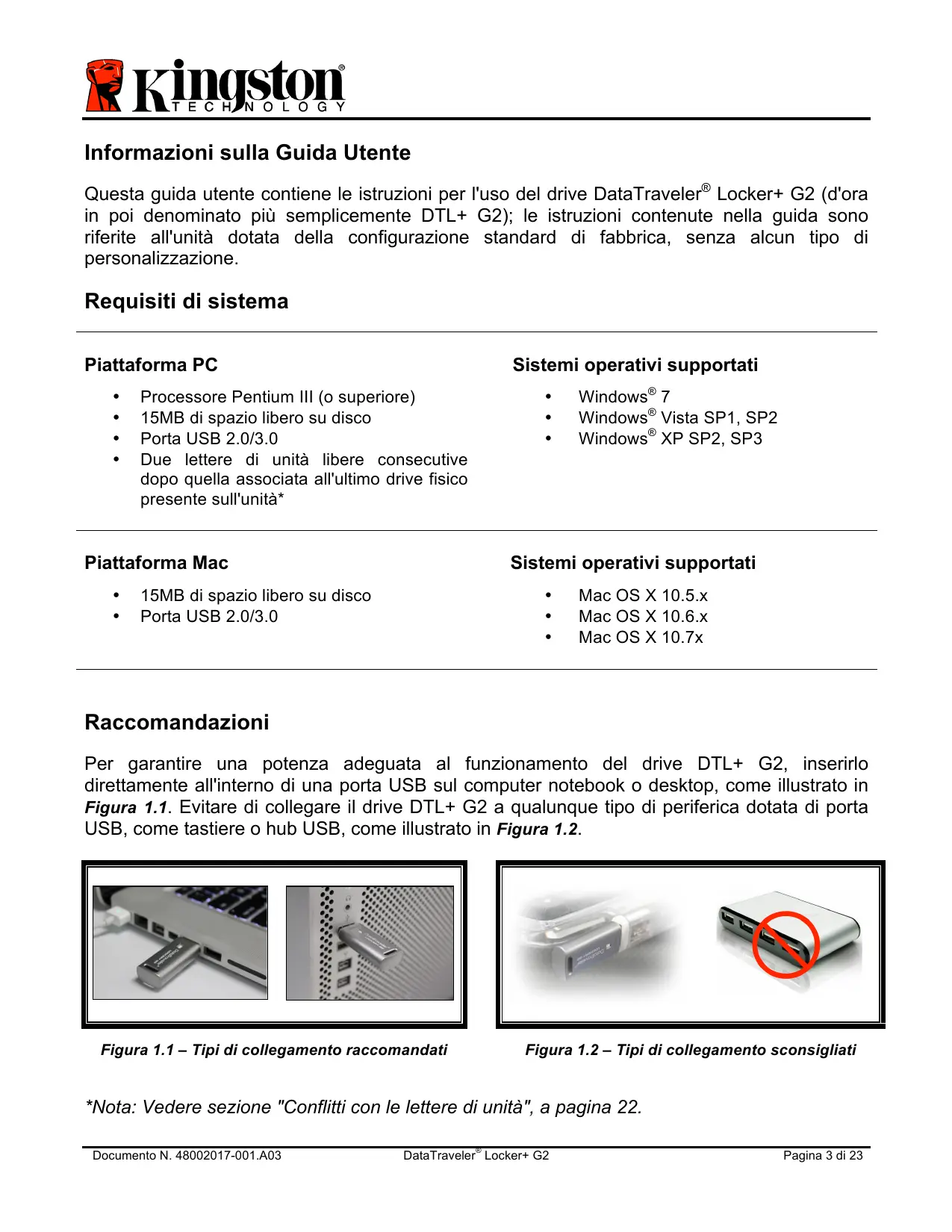 Scarica le istruzioni per il tuo Chiavetta USB in formato PDF gratuitamente! Trova il tuo manuale DATATRAVELER LOCKER G2/DTLPG2 - KINGSTON e riprendi in mano il tuo dispositivo elettronico. In questa pagina sono pubblicati tutti i documenti necessari per l'utilizzo del tuo dispositivo. DATATRAVELER LOCKER G2/DTLPG2 del marchio KINGSTON.