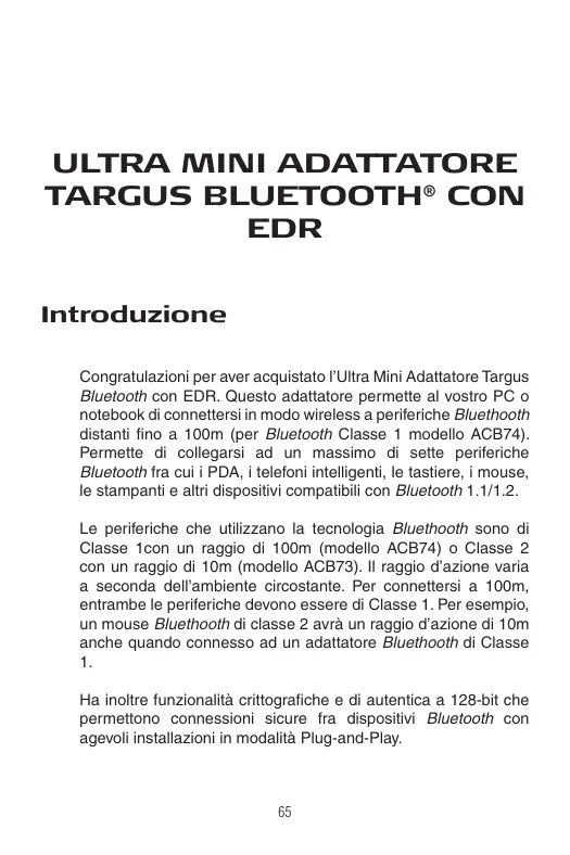 Trova gratuitamente il manuale del dispositivo ULTRA MINI BLUETOOTH TARGUS in formato PDF.