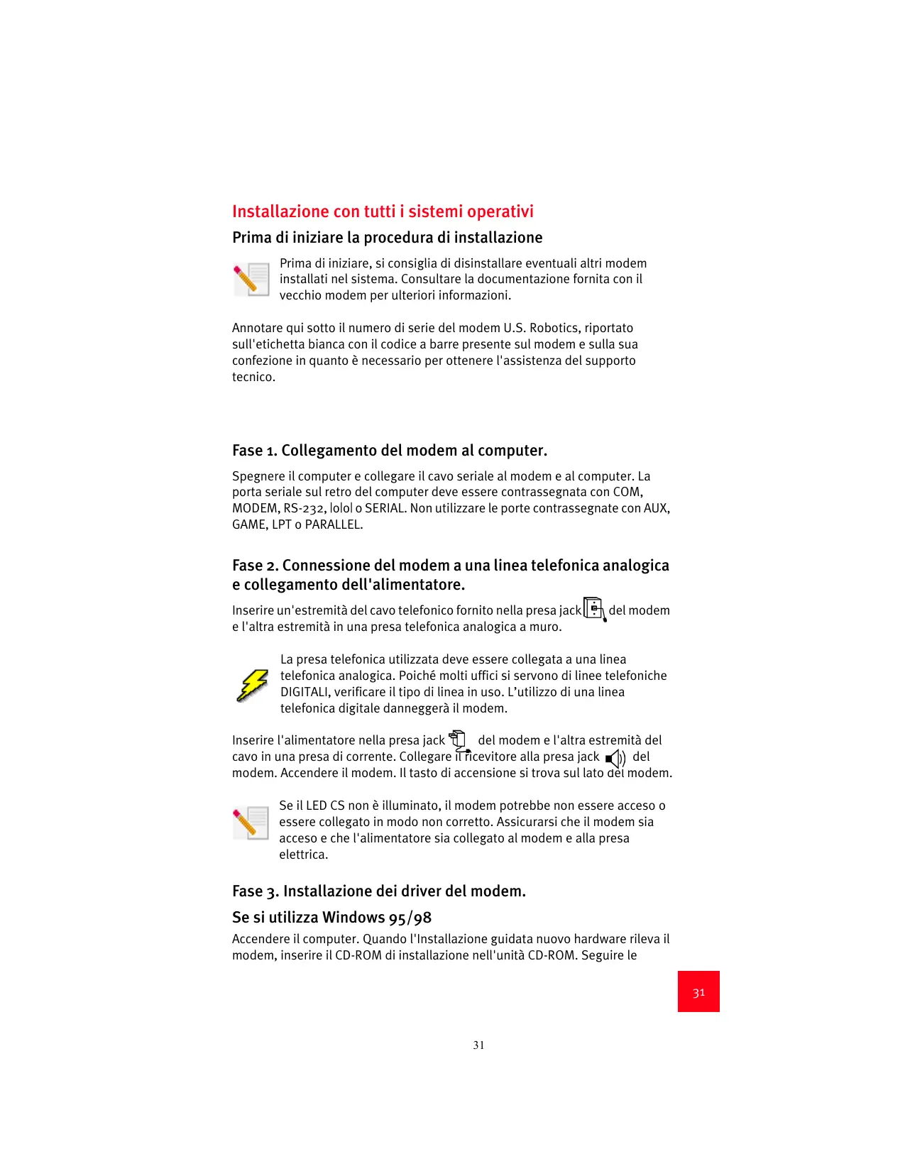 MANUALE UTENTE 56K MESSAGE MODEM US ROBOTICS