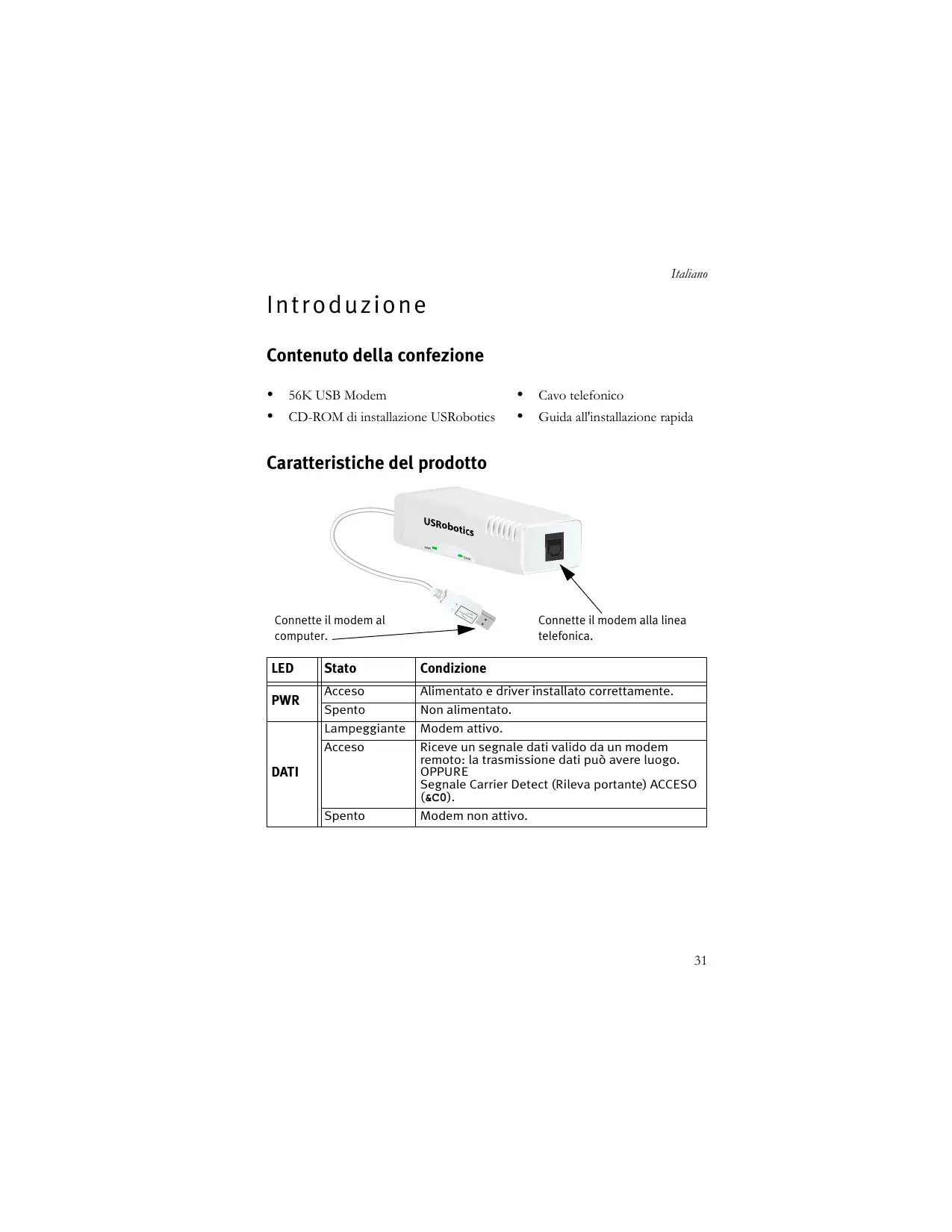 MANUALE UTENTE 56K USB MODEM US ROBOTICS