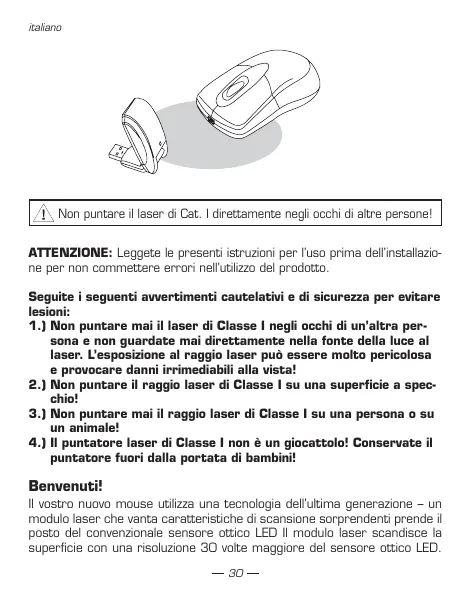 Il vestro nuovo mouse utilizza una technologia dell'ultima generatione - un modulo laser che vanta caratteristiche di scansion sorpendenti prendi il posto del convenzioneale sensore ottico LED Il modulo laser scandisce la superficie con una risoluzione 3D volte maggiore del sensore ottico LED.