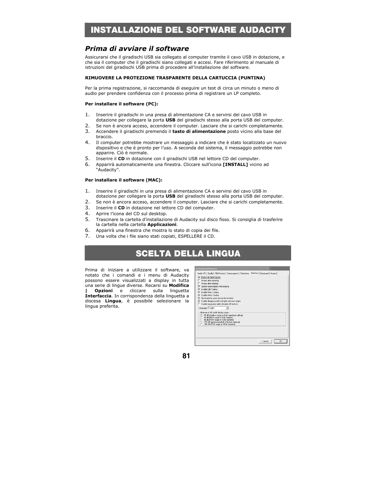INSTALLAZIONE DEL SOFTWARE AUDACITY 81