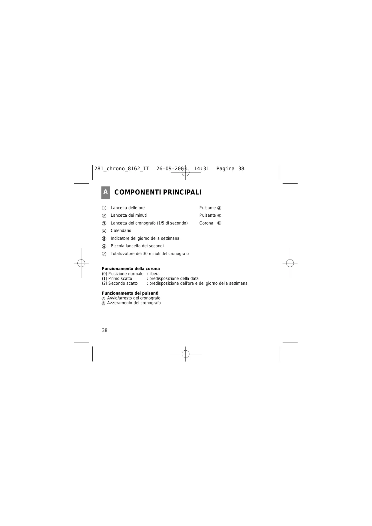 ① Lancetta delle ore Pulsante A