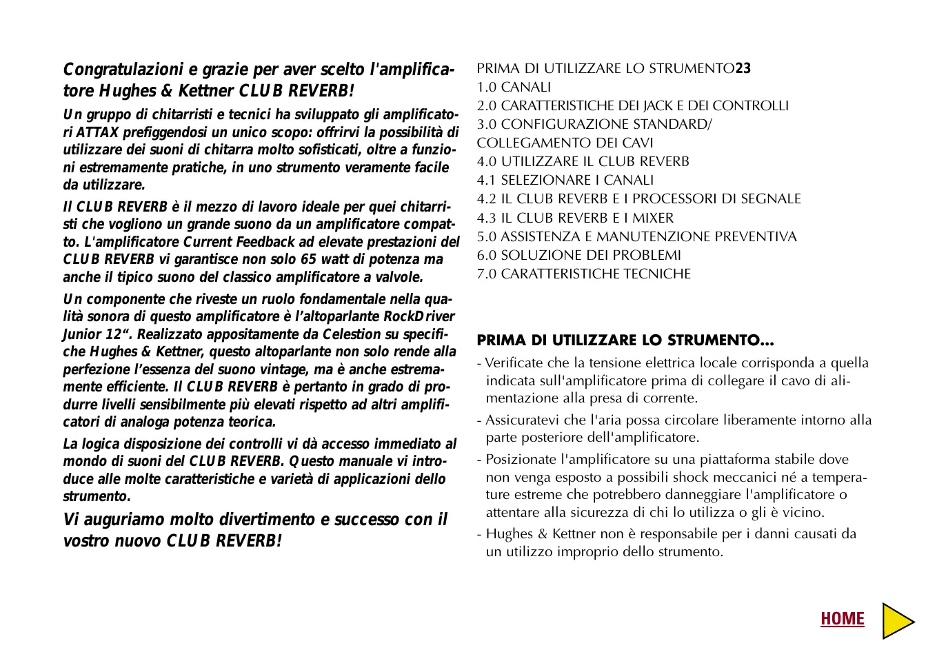 MANUALE UTENTE HUGHES & KETTNER CLUB REVERB HUGHES & KETTNER
