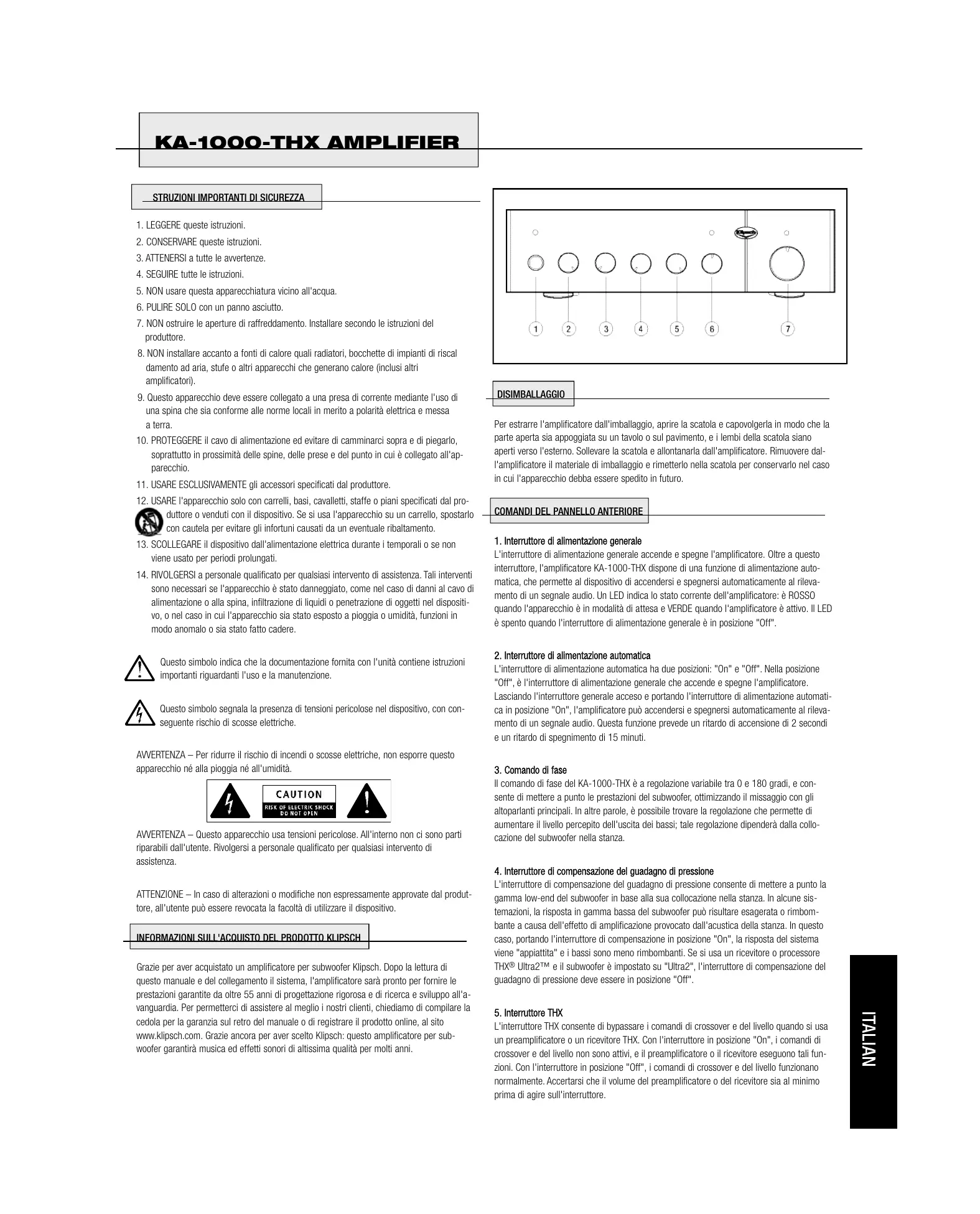 MANUALE UTENTE KA-1000-THX KLIPSCH