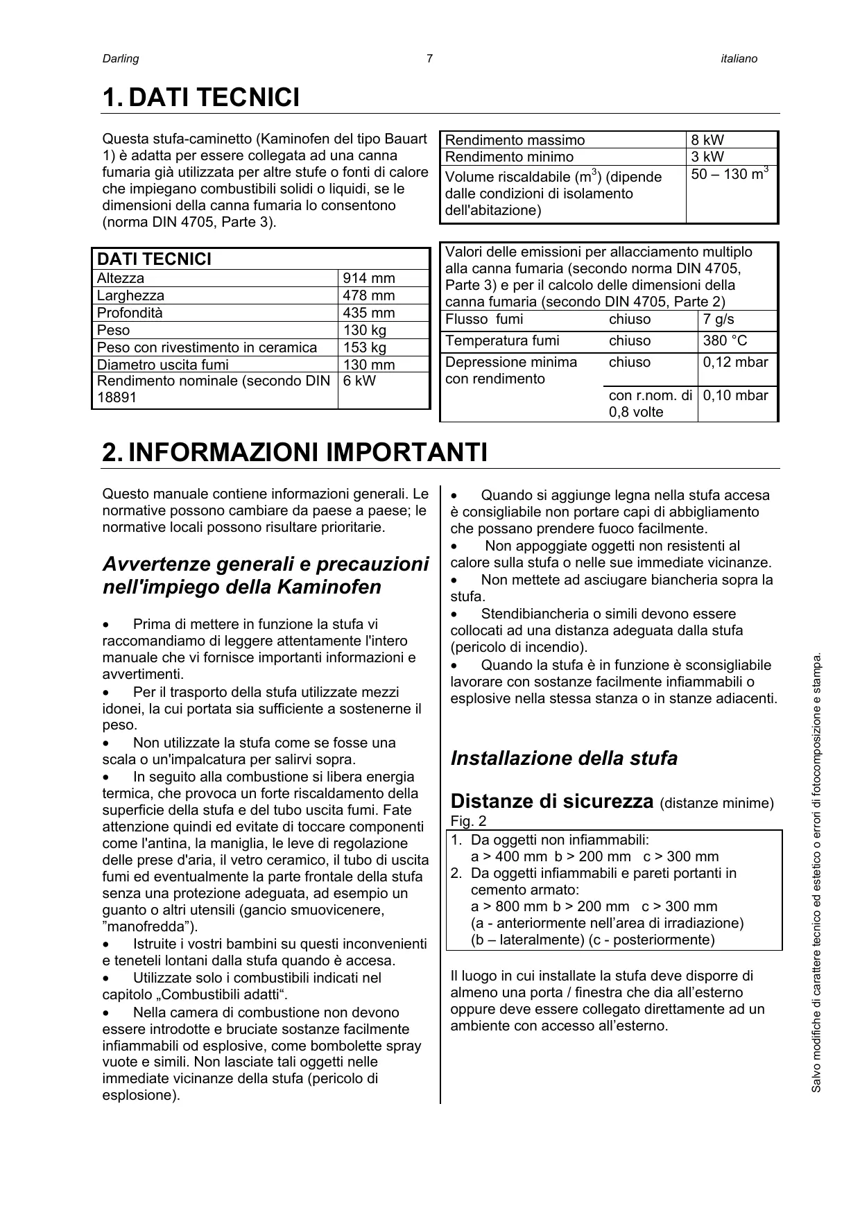 Avvertenze generali e precauzioni nell'impiego della Kaminofen