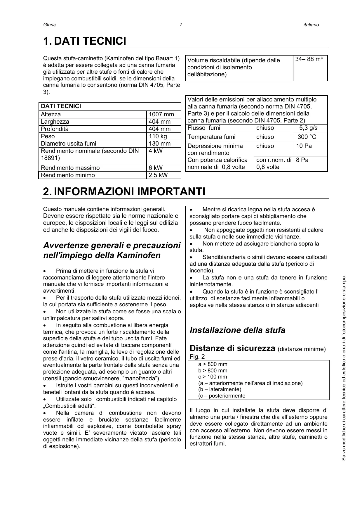Avvertenze generali e precauzioni nell'impiego della Kaminofen