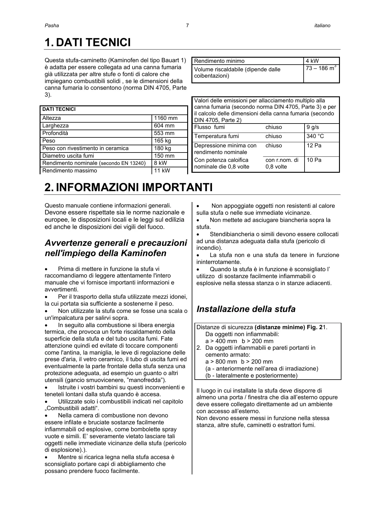 Questa stufa-caminetto (Kaminofen del tipo Bauart 1) è adatta per essere collegata ad una canna fumaria più utilizzata per altre stufe o fonti di calore che impiegano combustibili solidi, se le dimensioni della canna fumaria lo consentono (norma DIN 4705, Parte 3).