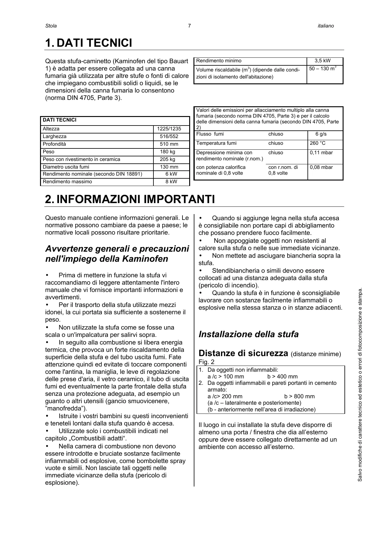 Avvertenze generali e precauzioni nell'impiego della Kaminofen