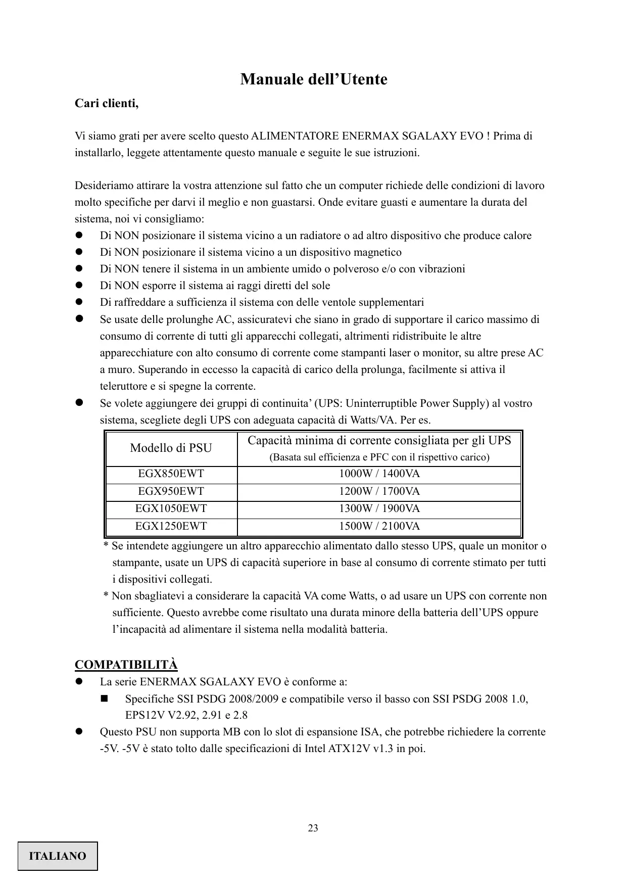 MANUALE UTENTE SGALAXY EVO ENERMAX