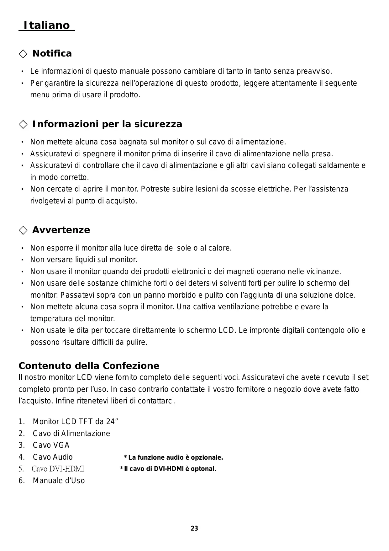 Scarica le istruzioni per il tuo in formato PDF gratuitamente! Trova il tuo manuale YUR.VISION YV24WBH1 - YURAKU e riprendi in mano il tuo dispositivo elettronico. In questa pagina sono pubblicati tutti i documenti necessari per l'utilizzo del tuo dispositivo. YUR.VISION YV24WBH1 del marchio YURAKU.