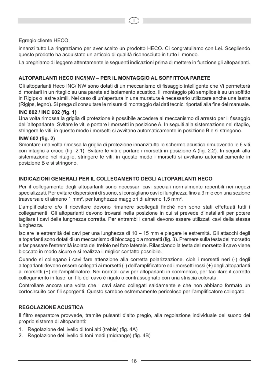 INDICAZIONI GENERALI PER IL COLLEGAMENTO DEGLI ALTOPARLANTI HECO